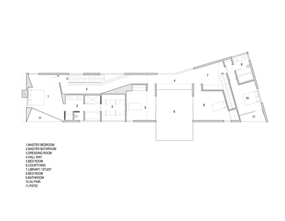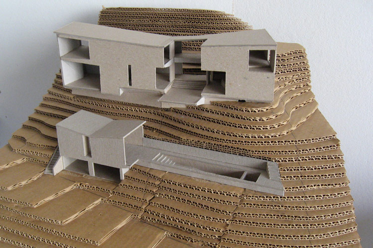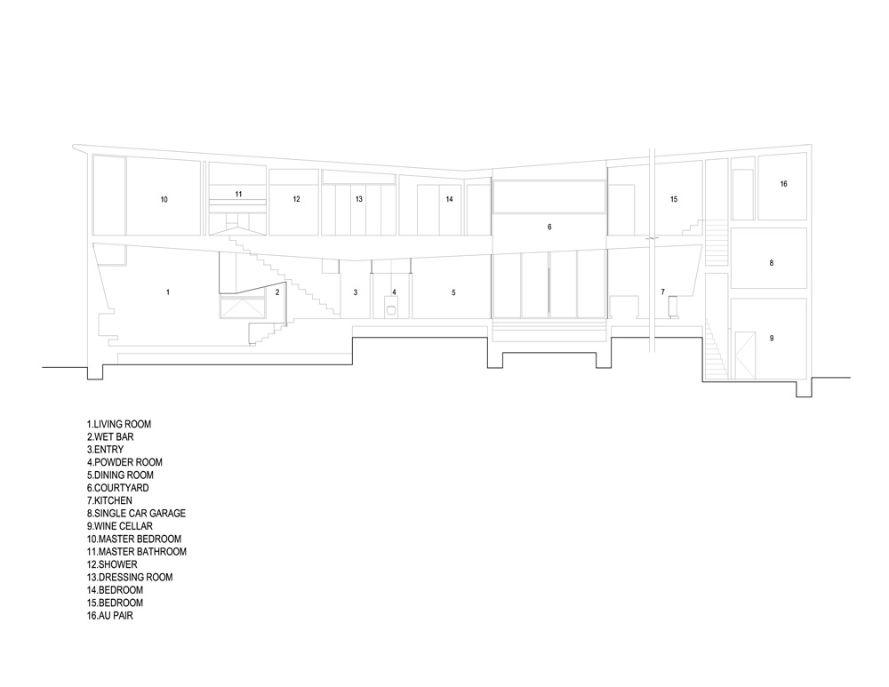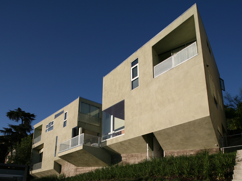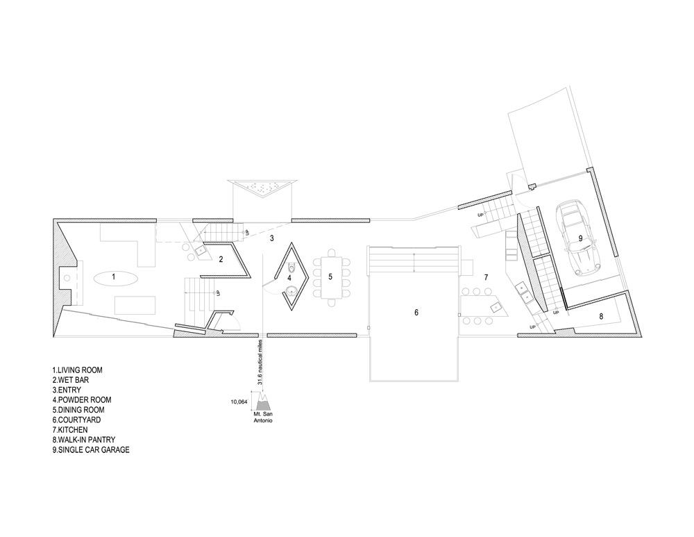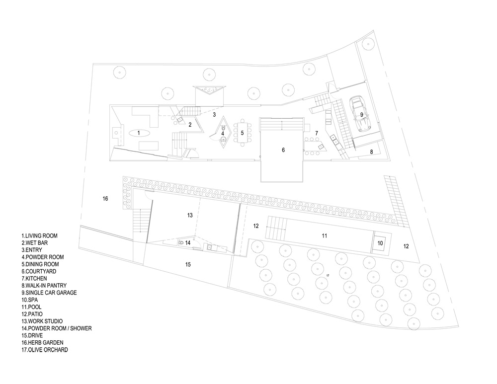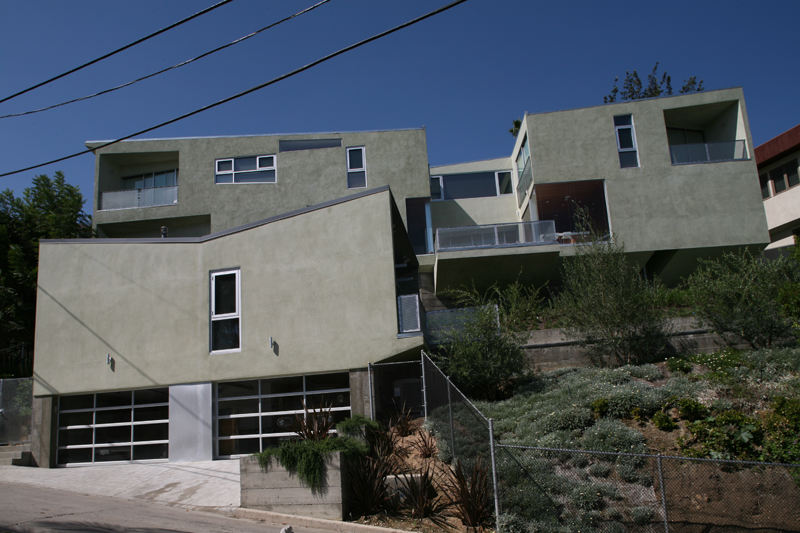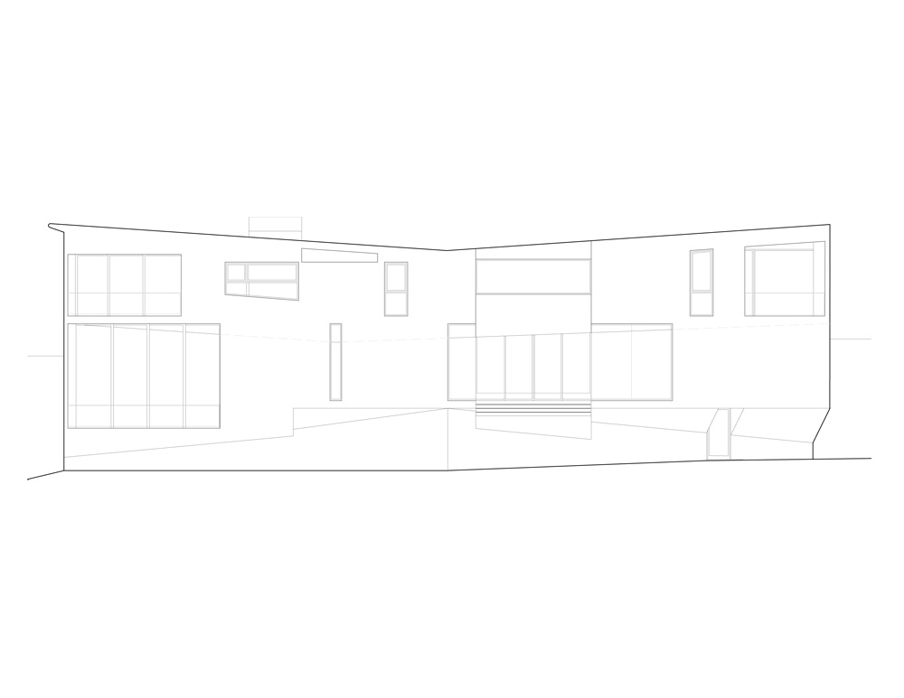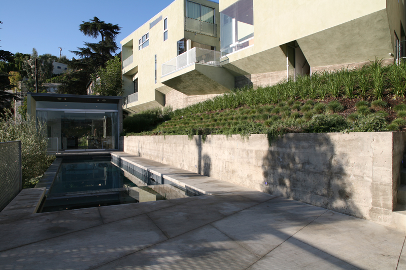 New two-story residence located on upper half of a double street-to-street lot with architect’s office and lap pool located on lower street.